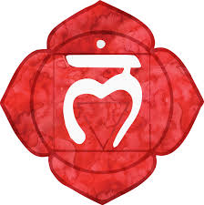 The first chakra, the root chakra, also known as the Muladhara chakra, starts from the back and goes downward like a root through the legs and feet of the spine at the coccyx. It defines our relation to Asasse Yaa, mother earth, and governs grounding, security, stability, the body, aspects of self, vitality, passion, primal and ancestral survival instincts. This chakra is the densest color, red. It is the foundation of the whole chakra system.